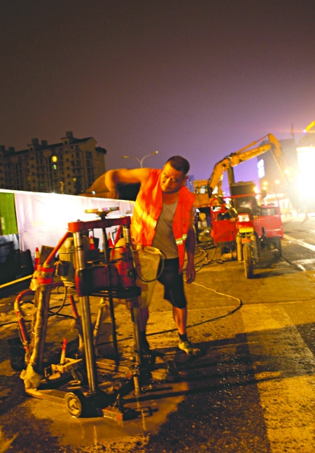 “这意味着现在看到的在主车道上的施工队伍,必须在早上6点前撤离,同时将路面清理干净。”7月7日凌晨,黄绍勇指着施工现场对记者说,“夜间施工会造成一定的噪音,但相对于白天的拥堵和工期延误来说,只能两权相害取其轻,尽量控制影响,希望市民多多谅解。” 为避免施工噪音,施工方也想了很多办法。比如滨江西路在施工过程中,把原本要运到工地人工切割的花岗岩改为在加工厂通过机械切割。此外,施工方在打围过程中也尽量为市民提供便利。比如蜀都大道东段在打围时为小区的出口留出足够的通道,并且铺设钢板方便市民进出。