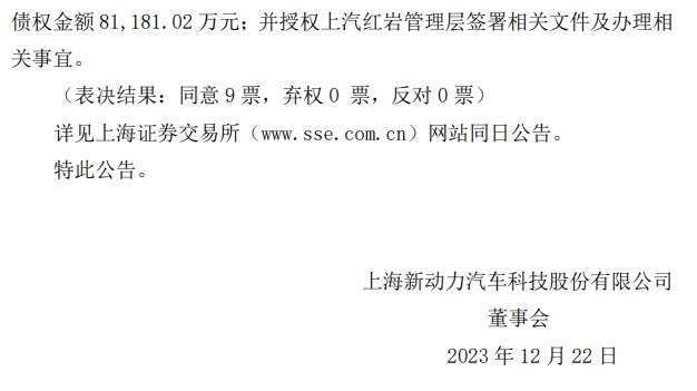 1、上汽红岩本次债权重组已经公司2023年12月22日分别召开的董事会2023年度第四次临时会议和监事会2023年度第四次临时会议审议通过。
