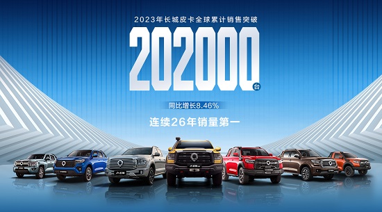 长城皮卡2023年全球销售突破20.2万台 同比劲增8.46%