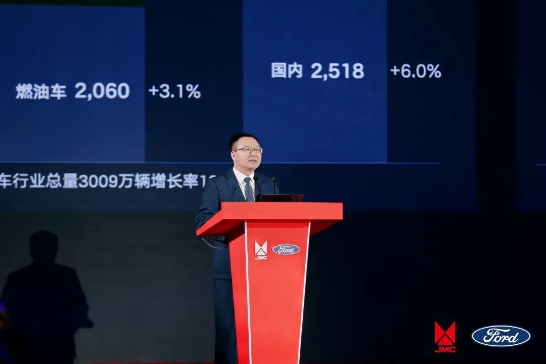 江铃集团党委常委、董事、江铃股份第一执行副总裁金文辉回顾了江铃股份2023年的发展历程,并明晰了2024年的努力方向。他表示,新的一年,我们要锚定全年销量目标,奋力开拓市场,强化已上市的全新一代产品的市场表现,保障新产品的高质量投放,稳住并提升市场份额,持续巩固在轻型商用车市场的领导地位;要重点实现新能源业务的转型突破、持续推进品牌向上战略、推动私域营销再上新台阶。江铃股份在2024年制定了更务实的“6+1”激励政策,出台了一系列为经销商减负和赋能的政策,携手经销商朋友们同心同力、应对挑战,克服困难、共赢发展。
