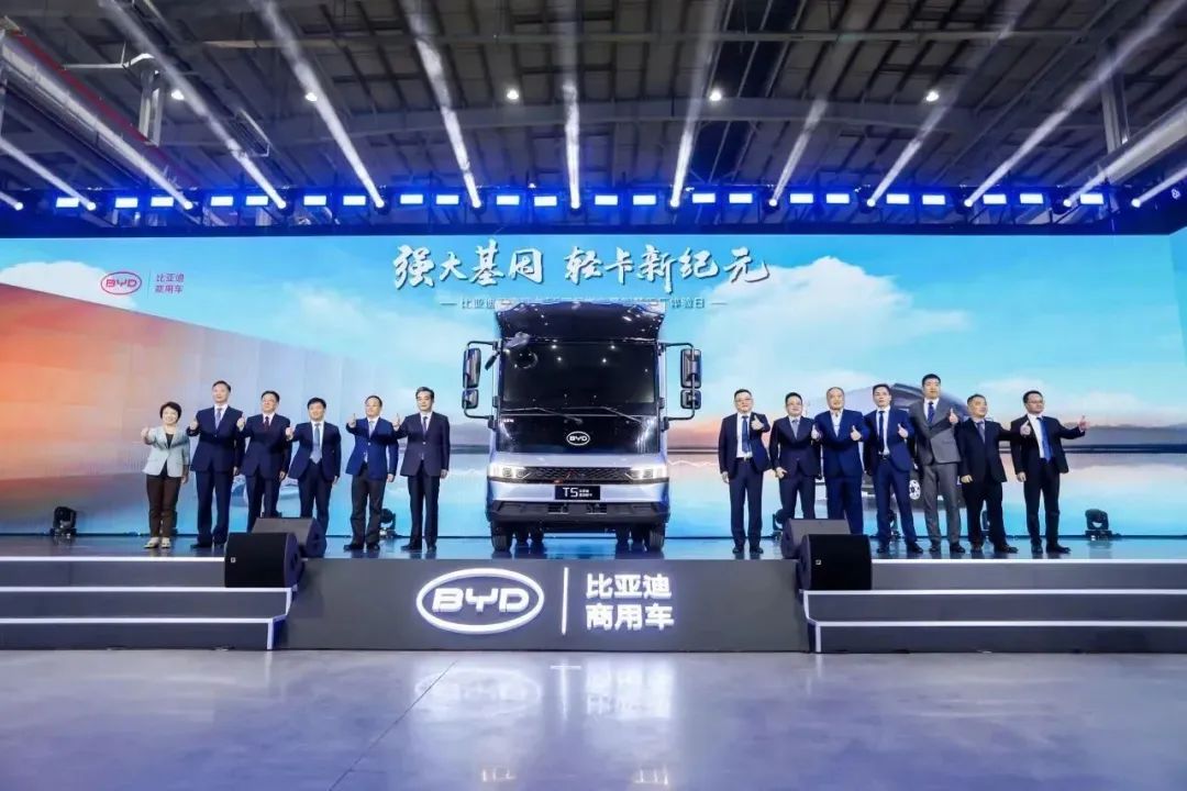 比亚迪首款搭载DM技术的4.5吨级城市物流轻卡T5与全新淮安卡车智慧工厂一同亮相,为交通运输发展贡献绿色方案。