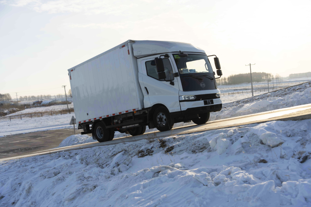 此外,在以往极寒试验项目的基础上,比亚迪车队还新增了冰面驱动防滑、冰圆环测试、坡道停车等项目,并交出令人满意的答卷:以全新混动轻卡T5DM为例,车辆在附着力系数极低的情况下,标配的电子车身稳定系统精准介入,实施干预,保证车辆实现稳定行驶;在雪地测试中,得益于比亚迪行业首创轻卡BSC制动,T5DM制动能力大幅提升,响应速度提高4倍,紧急制动性能提升50%。