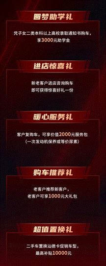 6月7日-8月31日期间,HOWO轻卡重磅推出状元礼、金榜礼、题名礼等助学好礼。状元礼:凡有直系亲属考入国防七子高校的新购车客户,2000元定金即可享受10000元的购车抵扣;金榜礼:凡有直系亲属考入985或211高校的新购车客户,2000元定金即可享受6000元的购车抵扣;题名礼:凡有直系亲属考入其他高校的新购车客户,2000元定金即可享受4000元的购车抵扣。扎实有料的钜惠多重豪礼,尽显HOWO轻卡的品牌诚意。