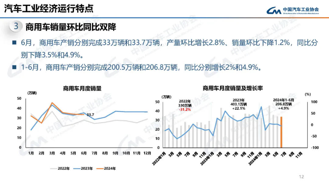 2024年上半年商用车销售206.8万辆 同比增长4.9%