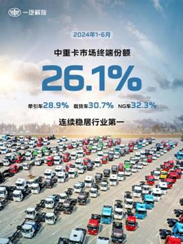 一汽解放“大象转身”的成果和进步是足够令人震撼的。今年上半年,一汽解放共销售整车15.18万辆,同比增长15.4%,实现逆势增长。其中,中重卡在极度激烈的竞争环境下,实现“国内批发终端双第一”,终端份额达到26.1%,连续稳居行业第一。