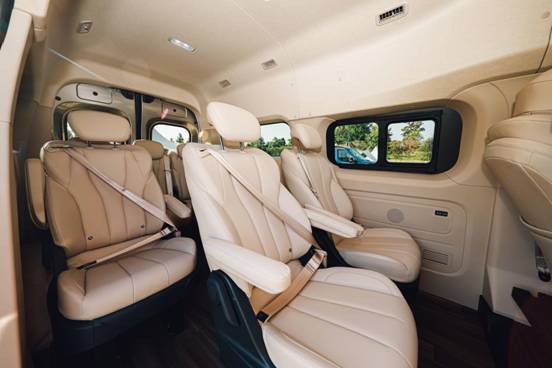 豪华版2025款新途V70率先成为轻客圈内最能比肩MPV乘坐体验的“九座大商务”首选。车内高度近1.8m,整体空间宽绰,二三排独立豪华皮质座椅,最大间距近750mm,真实“大三排”越级体验,行李区也可轻松容纳9人行李。大功率前后冷暖空调+PM2.5过滤空气净化,让车内空气更清新。比MPV多2座的设计,让新途V70豪华版成为商务团体出行利器,一台新途V70=2台4座乘用车+1台行李运输车,“一台能当3台用”!