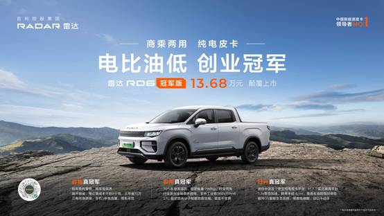 雷达RD6冠军版正式上市,售价13.68万元