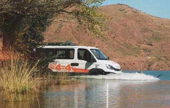 旅途中经过涉水路段也家常便饭。依维柯4×4的分动器与前后桥差速锁全电控操纵,实现了真正意义上的三把电锁,确保了车辆在穿越湍急的河流或水库时始终拥有卓越的牵引力和稳定性;三把锁的实力还体现在陷车窘境时,当车辆后轮陷入淤泥动弹不得时,4×4的后桥差速锁锁止,通过中央差速锁、前桥差速锁的协同作战,便可以轻松脱困。