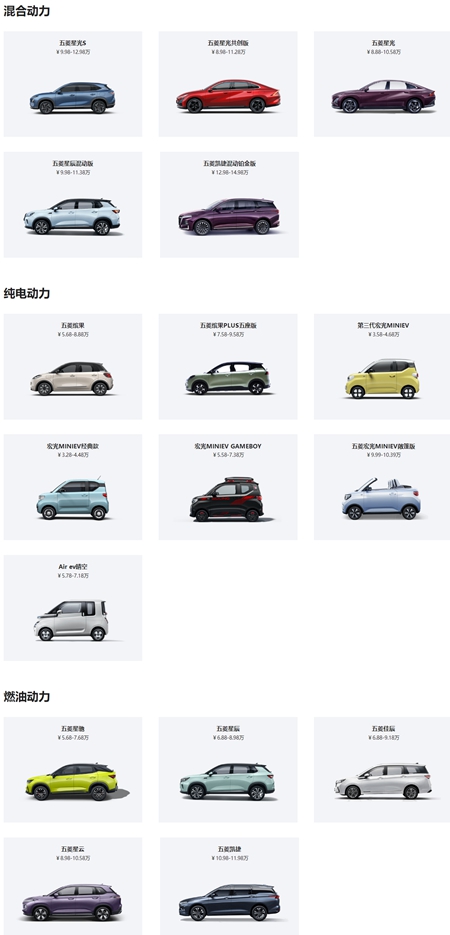 在单车售价向上方面,宝骏已脱离560、730等第一代产品“车大价低”的定位,而是以更具个性化、品质化的新能源矩阵出击,云朵、云海的全车系售价都已站上10万元大关。五菱银标产品矩阵则更加丰富,全面涵盖混合动力、纯电动力、燃油动力三大板块,从微型车MINIEV到六座MPV凯捷一应俱全,全系产品中最高售价也摸高至14.98万元。