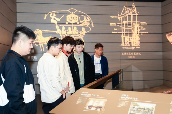 迪空间的一楼是“品牌文化空间”,用户可以跟随复古壁画的投影和实物展品,穿越时空进入汽车世界,探索汽车动力的演变历程,见证中国新能源汽车的崛起之路。