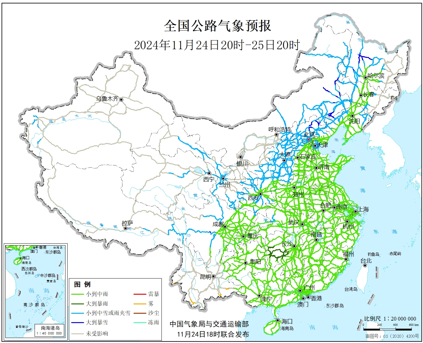 全国公路气象预报(11月24日20时至25日20时)