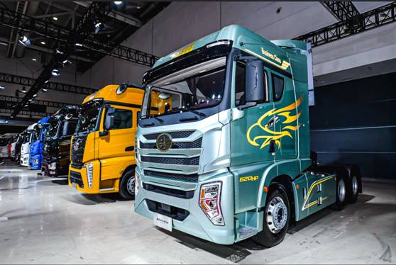 海外展区展出7款青岛中重型展车、10款本部中重型展车、6款轻型车,其中海外出口中坚产品JH6,备受瞩目。JH6畅销60多个国家,累计实现销量3万余台。此次展会,JH6展示了CNG长续航款、沙特款、非洲款和首款AMT自卸车,为全球用户的多样化需求提供了最优解决方案。出口版J7、虎6G等车型也都重磅亮相。