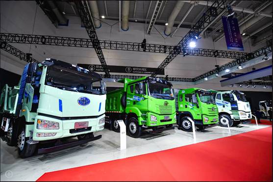另外,新能源展区共展出12台展车,备受关注的有针对煤炭、钢厂、砂石料等场景的J6L-400kWh纯电标载牵引车,针对建筑施工、桥梁建设等场景的J6L搅拌车以及J6P矿山自卸车。