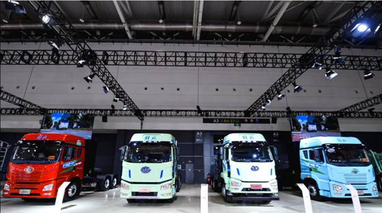 会议现场,集结亮相的全系列百余款解放展车作为大会重头戏备受瞩目,整车展区按照全新规划布局,多款新型产品震撼亮相,展示了一汽解放在技术创新上的深厚底蕴,也向世界彰显了一汽解放面向未来市场阔步前进的坚定决心。