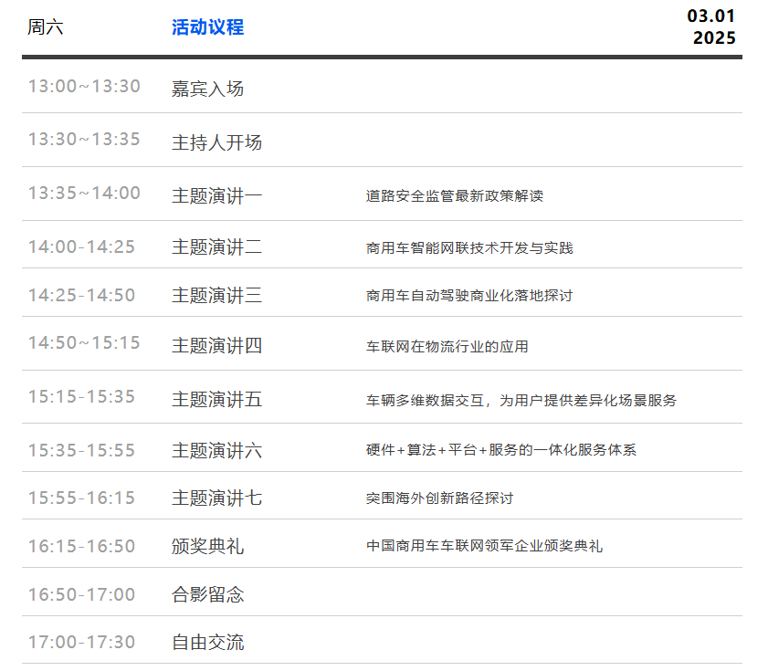 2025年大会全面升级,围绕当前智能网联产业的新动向、新热点设置多项议题,并重点关注国内全渠道发展模式、AI技术赋能、破局内卷、出海等热点话题,与各位行业精英同仁深入研讨,共商用车车联网产业新未来!