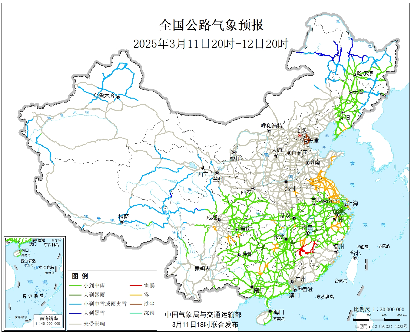 全国公路气象预报(3月11日20时至12日20时)