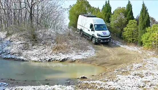 淤泥湿滑路段,车轮容易在泥泞中“趴窝”,进退两难。依维柯欧霸•山海、欧霸•雷霆缓缓驶入这片泥沼,全时四驱系统悄然发力,三把差速锁迅速介入,将动力均匀分配到每个车轮,车轮稳稳咬合泥浆,在打滑瞬间迅速锁止空转轮,期间车身依旧保持平稳。