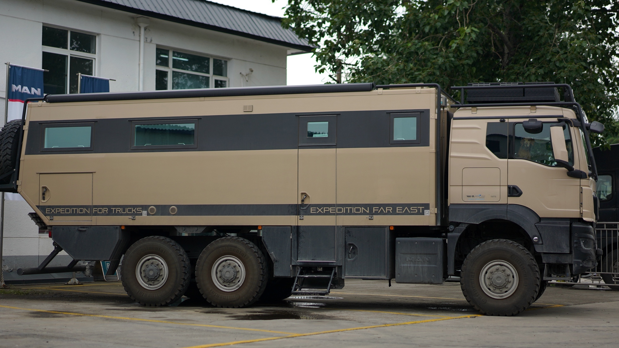 该车辆基于曼恩TGS 6X6底盘打造,以D26发动机为核心的强劲动力系统是全地形场景的能量核心;作为曼恩专业越野底盘的标志性设计,6X6全轮驱动系统配备中央差速锁与轮间差速锁,使其在复杂地形如泥泞、沙漠等环境中具有出色的通过性;先进的悬挂系统和减震装置,有效提升了驾驶的舒适性,减少了长途驾驶的疲劳感;同时,底盘的可靠性和耐久性也经过了严格的考验,能够从容迎接3万公里的挑战。