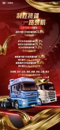 三大细分市场持续领跑 一汽解放5月终端销量第一