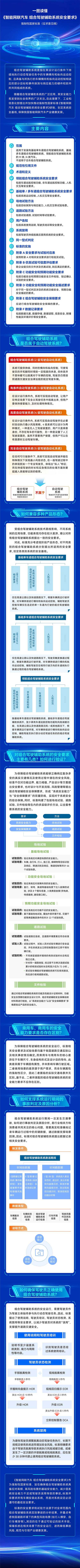 工业和信息化部高度重视智能网联汽车安全工作,坚持“急用先行”原则,组织全国汽车标准化技术委员会加快制定《智能网联汽车 组合驾驶辅助系统安全要求》强制性国家标准。该标准的技术内容在合理可行的前提下,与UN R171《关于批准车辆驾驶员控制辅助系统(DCAS)统一规定》等国际标准法规协调接轨,并紧密结合中国复杂道路交通场景,充分考虑不同产品形态和技术路线,将组合驾驶辅助系统分为基础单车道组合驾驶辅助系统、基础多车道组合驾驶辅助系统、领航组合驾驶辅助系统以及泊车组合驾驶辅助系统(本标准的标准化对象不包含泊车组合驾驶辅助系统)。从“提升产品能力表现”“强化安全保障要求”“规范系统使用方式”维度构建“三重安全保障”,多维度规范组合驾驶辅助系统安全能力,支撑道路交通安全水平提升。
