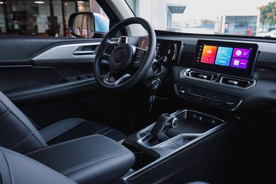 细节设计上,新车车姿抬高20mm,离地间隙最高达236mm,底盘通过性更强,车姿更威猛、更协调;低货台设计,货箱离地高度降低10mm,搬运货物更省力省时;更有同级唯一原厂货箱照明,无论是凌晨上货,还是晚市装卸运输,都保证货箱内清晰明亮,让装卸更安全高效。此外,自动挡全系标配10.25英寸高清大屏+倒车影像,流畅不卡顿;领航型搭载乘用车级车联网系统,可畅快体验智能语音、智能车控、智能导航、车载微信、抖音等服务功能。