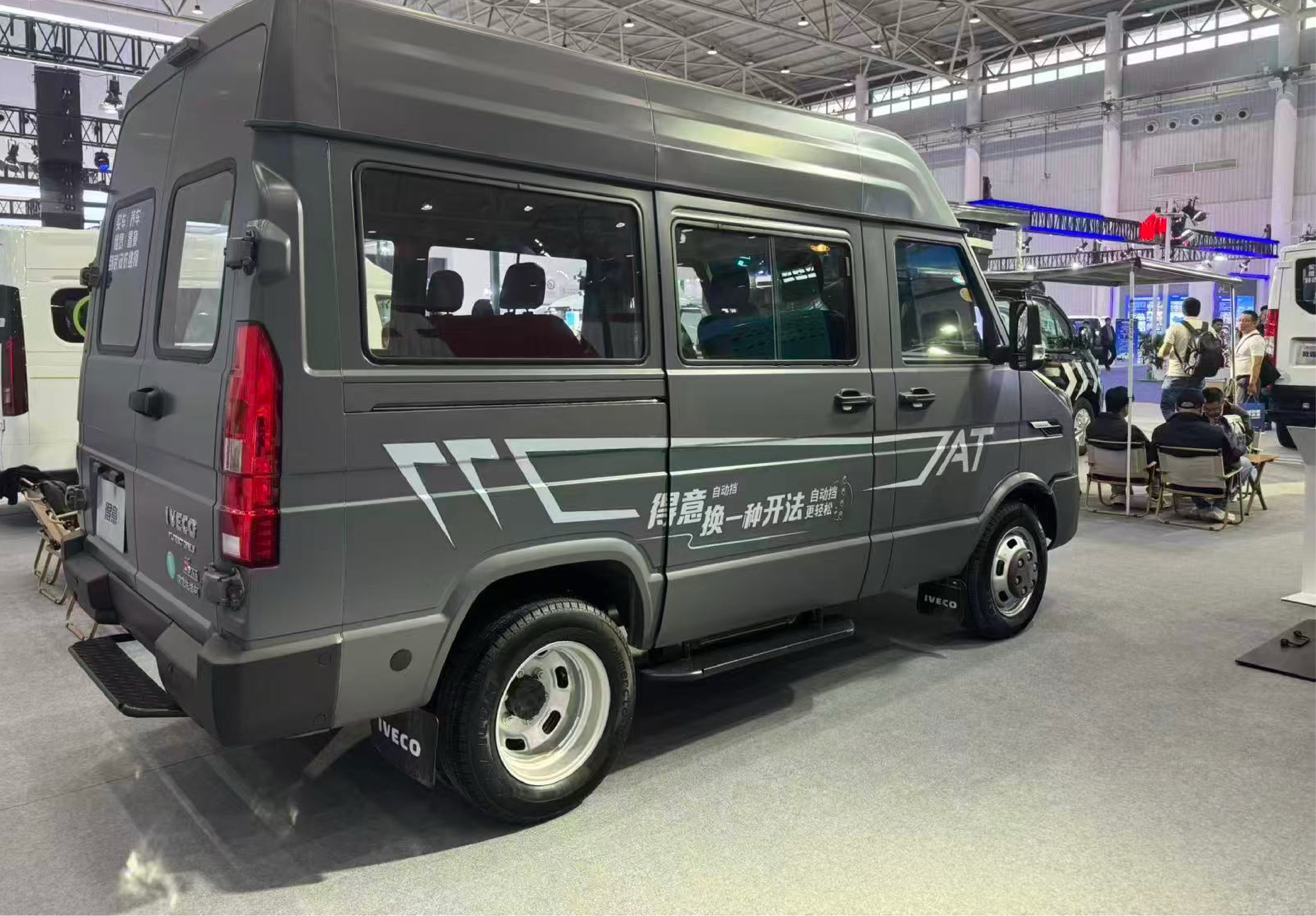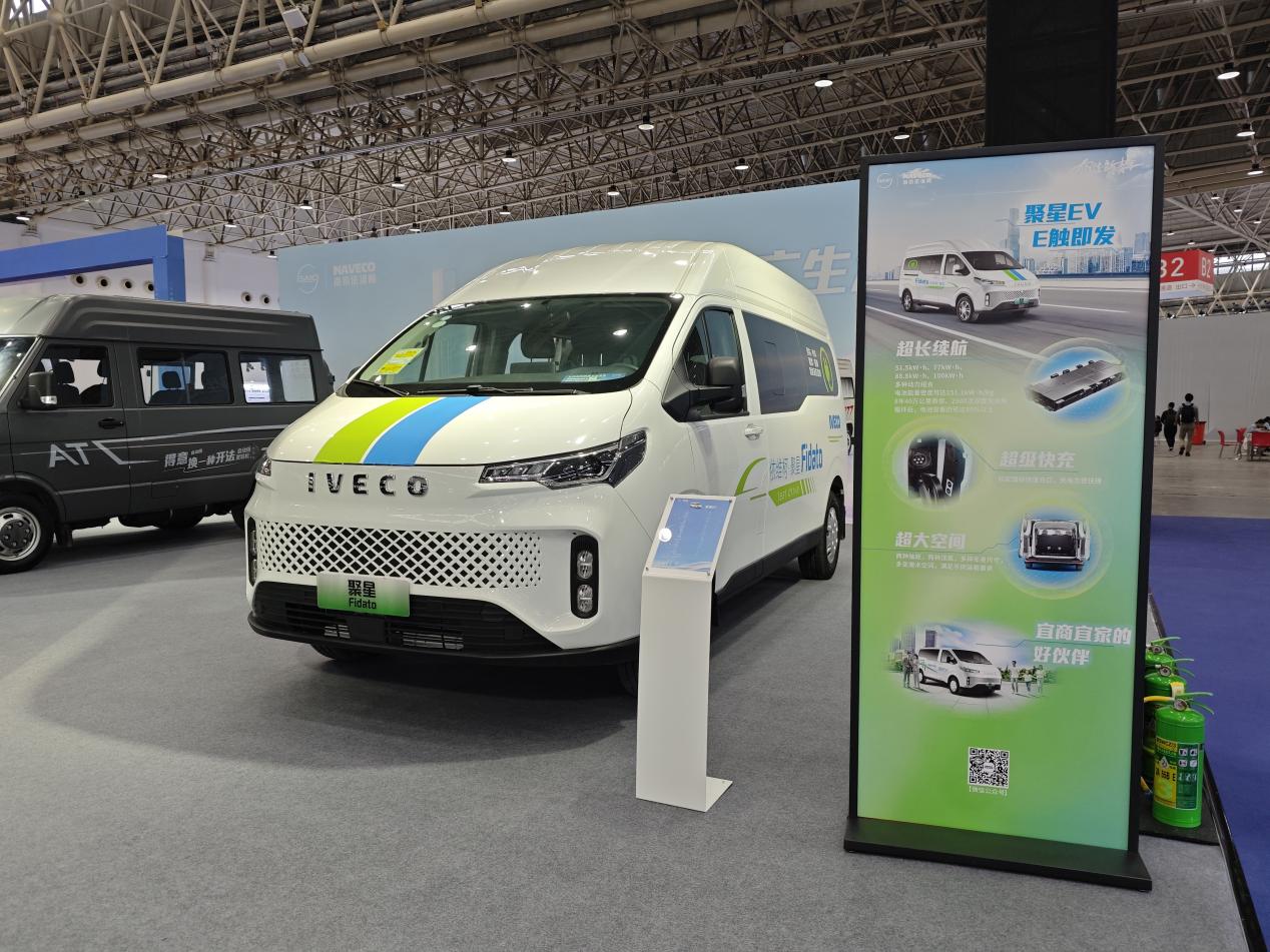 走进南京依维柯展台,就能看到集时尚与智能于一身的依维柯聚星系列产品。它外观前卫,车身线条流畅,还有巨幕全景侧窗,看起来很有未来感,代表着年轻、活力与创新。