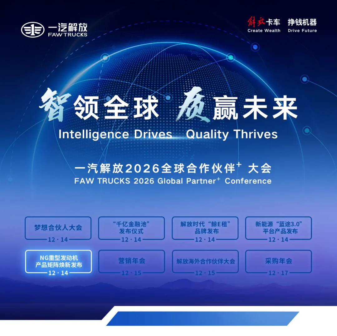 12月14日,以“智领全球 质赢未来”为主题的一汽解放2026全球合作伙伴大会在成都盛大开幕。当日下午,NG重型发动机产品焕新发布会隆重召开。