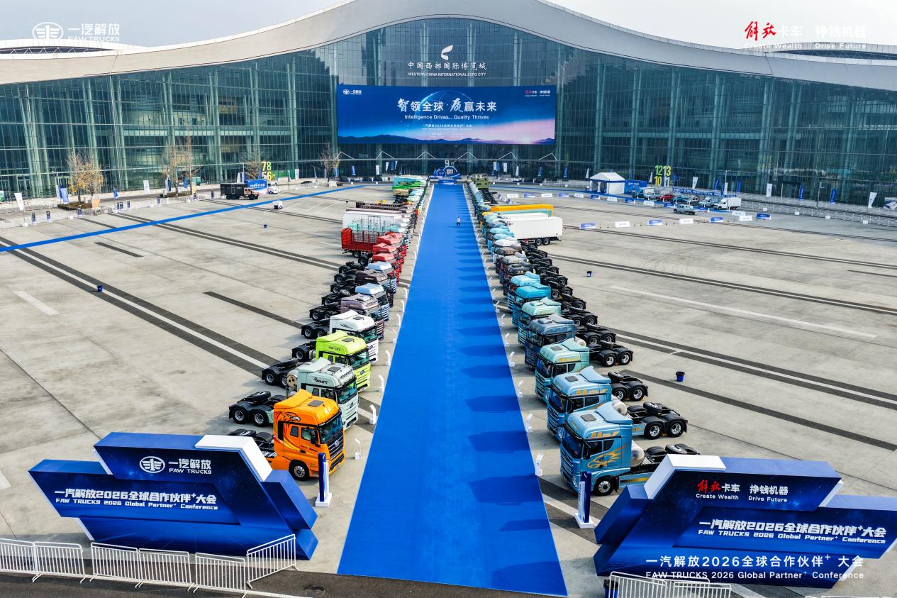2025年12月14-17日,一汽解放2026全球合作伙伴大会在成都隆重举办。短短4天时间内连续多场重磅活动:梦想合伙人大会,千亿金融池,“鲸E租”新能源租赁品牌发布,“蓝途3.0”新能源产品发布,NG重型发动机产品发布……大会规模、展车展品数量、发布内容、质量成果都是历史之最、行业之最,彰显出一汽解放向“科技解放、绿色解放、国际解放”迈进的信心和决心。
