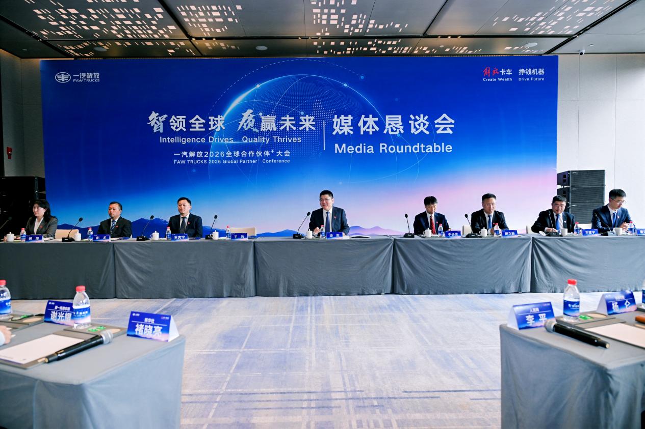 期间“媒体恳谈会”上,一汽解放党委领导班子成员与全国44家媒体伙伴,共同围绕商用车行业趋势和一汽解放经营发展深入交流,共话发展之势,共谋领航之路。一汽解放董事长、党委书记李胜在交流中回顾了一汽解放“十四五”的发展成就,详细介绍了2025年解放“先抑后扬”的业绩表现,并解答了有关“十五五”一汽解放的目标和着力点。