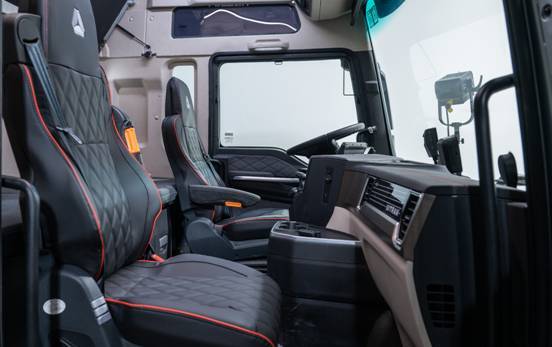 在征服外部世界的同时,车内则是用户专属的舒适港湾。其驾驶室不仅配备奢华内饰和减压卧铺,极大缓解长途驾驶的疲惫,更基于对国人驾驶习惯的深度洞察,实现底盘悬架、驾驶室气囊悬置、驾驶室座椅的联合调校,将振动频率控制在1Hz~1.5Hz之间,驾驶员能获得最舒适的驾驶体验,从而以最佳状态专注于前方路况。