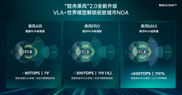 伴随行业首个单征程6M城市NOA正式上车,轻舟正式发布新一代“轻舟乘风2.0”辅助驾驶解决方案,形成乘风AIR、乘风PRO和乘风MAX三级产品矩阵。
