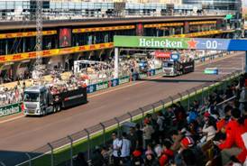 全球首发的SITRAK赛道版重卡惊艳亮相商贸区,融合F1空气动力学精髓的设计彻底打破对传统重卡的认知,炫酷外观与硬核性能双在线,成为现场打卡焦点;汕德卡巡游车作为赛道巡礼核心载体,以稳定的动力表现、高辨识度的品牌设计圆满完成巡游任务,在极速赛场中彰显中国重汽高端产品的品质底气。