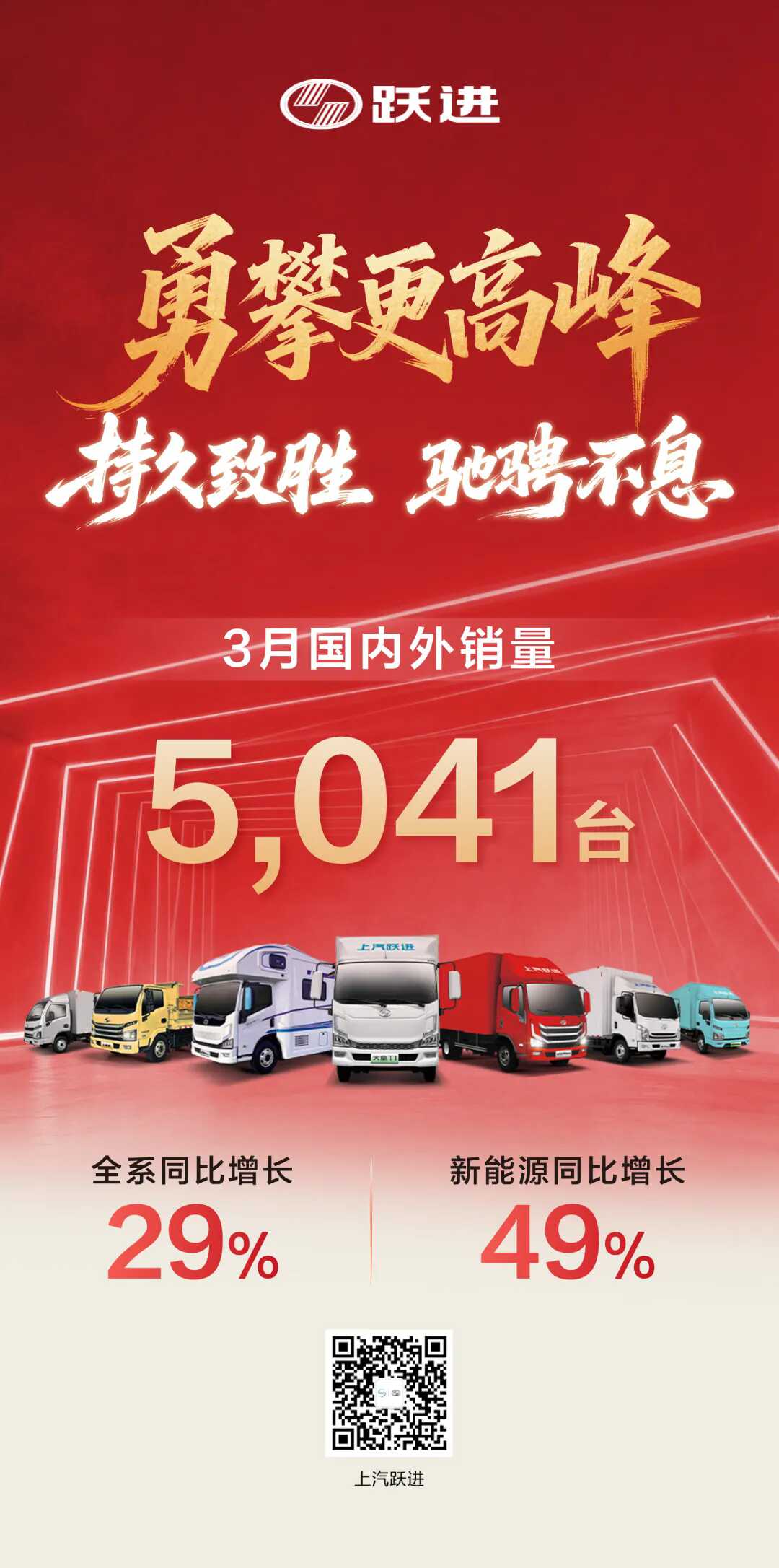 以3月销量新高、一季度稳健增长为新起点,上汽大通将继续锚定“全球轻型商用车领导者”战略愿景,持续深化新能源转型与全球化布局,以更优质的产品与服务深耕全球市场,引领轻型商用车行业迈向绿色、智能、全球化的高质量发展新阶段。