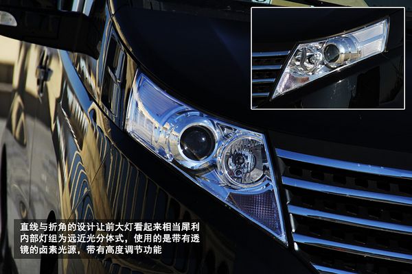 瑞风M5采用直线与折角设计的前大灯看起来相当犀利,内部灯组为远近光分体式,使用的是带有透镜部件的卤素光源,并且带有高度调节功能。