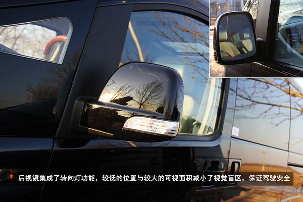 后视镜集成了转向灯功能,较低的位置与较大的可视面积减小了视觉盲区,提升了驾驶安全性。