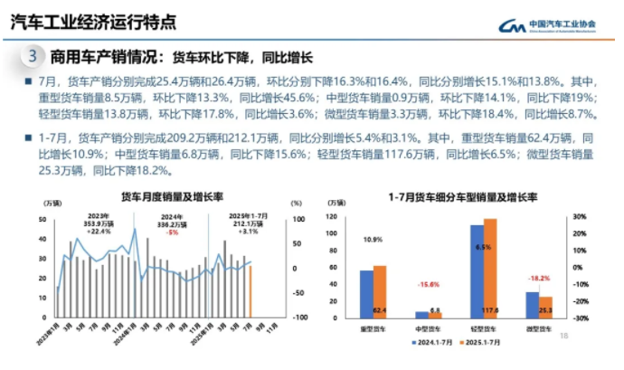 2025年7月,重卡销量同比增长45.62%,充分展现出了整体市场稳健增长的势头。值得注意的是,重型货车北斗营运证入网销量口径显示,7月份,全国共新增新能源重... 详细>>